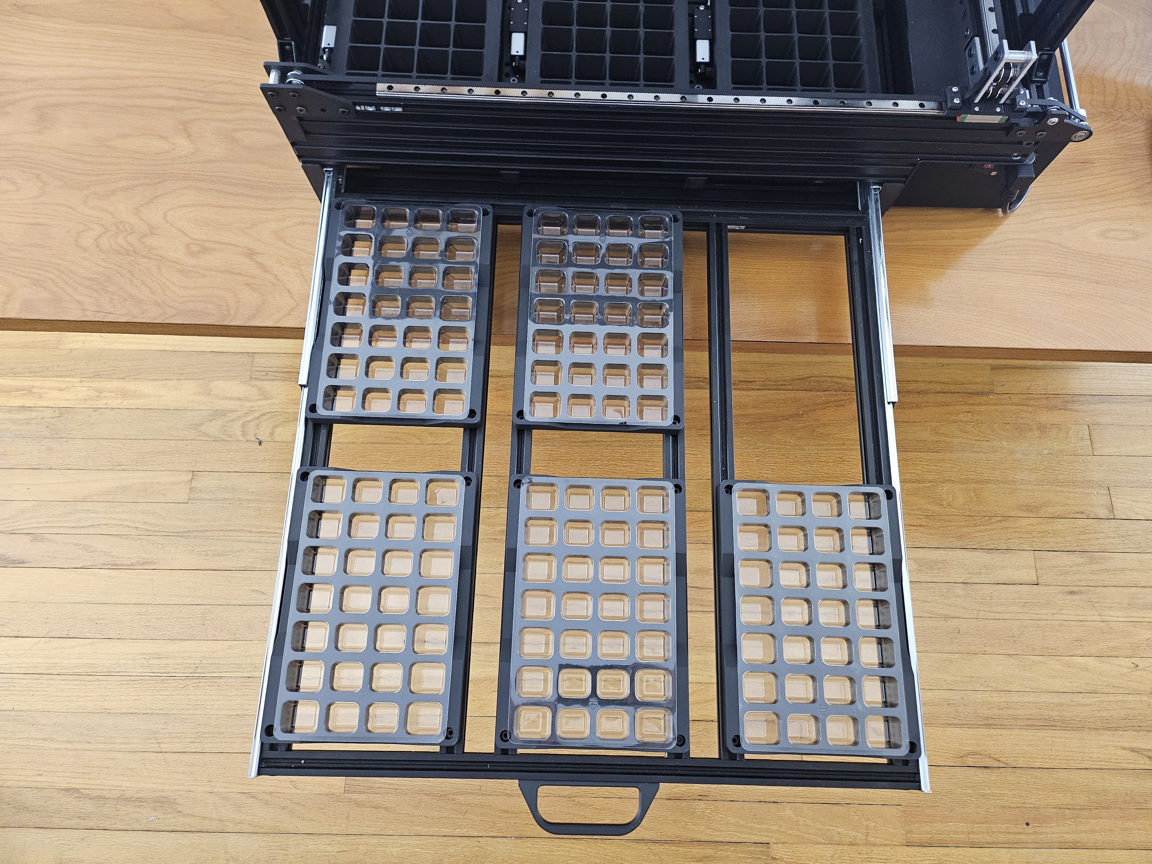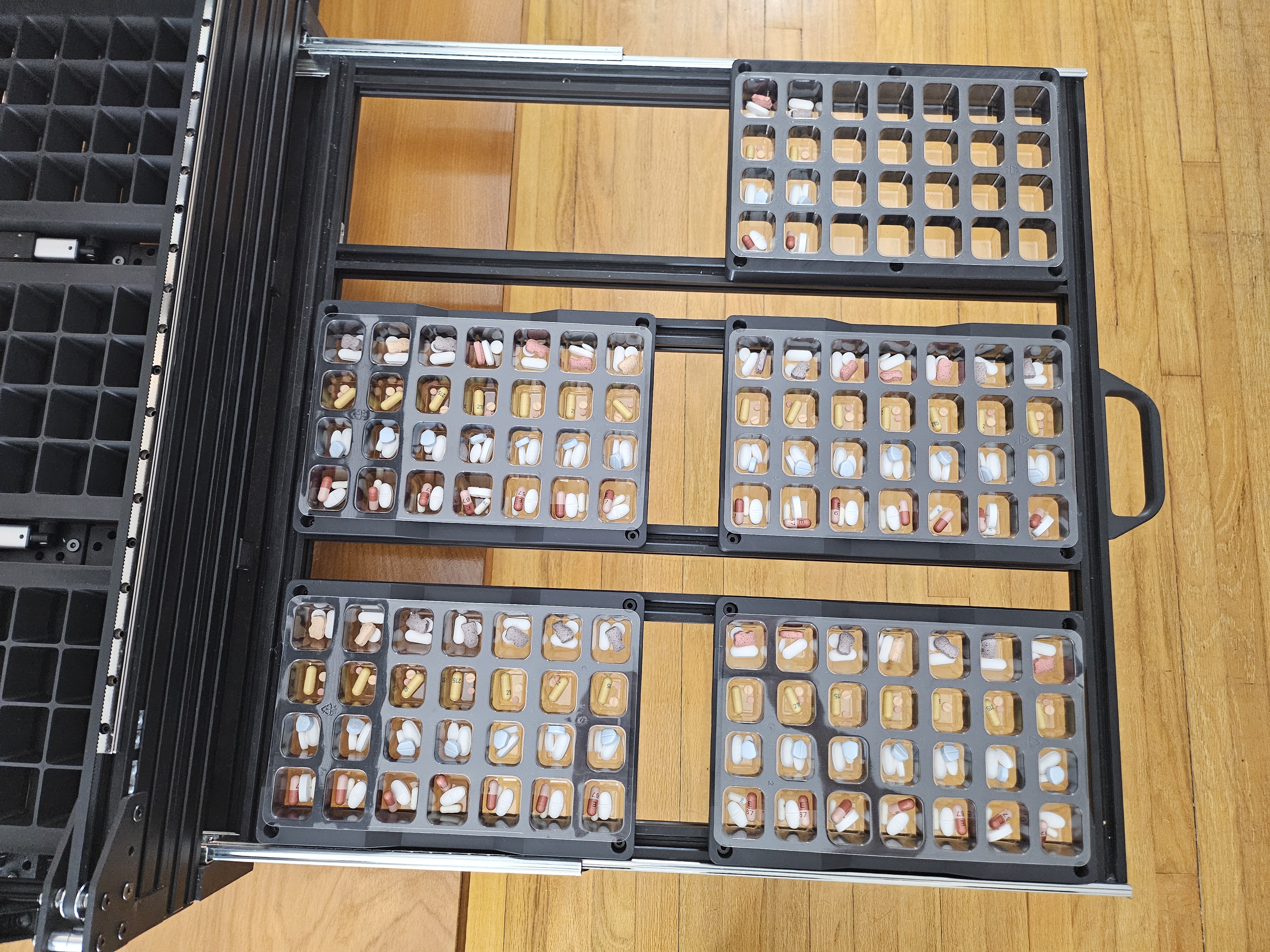 - Each pill is placed into the correct staging tray compartment (one pill per compartment).